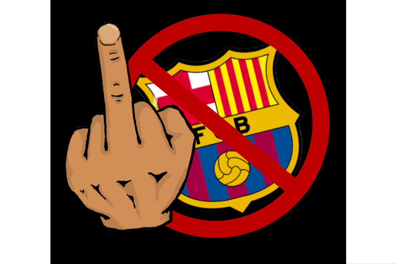 Enganxina amb fons negre. Al centre hi trobem FCK i l'escut de tres opcions a escollir, cada una d'un respectiu equip o col.lectiu. Aquests es troben amb un símbol de prohibit damunt. Les mesures de les enganxines són de 6x6cm.